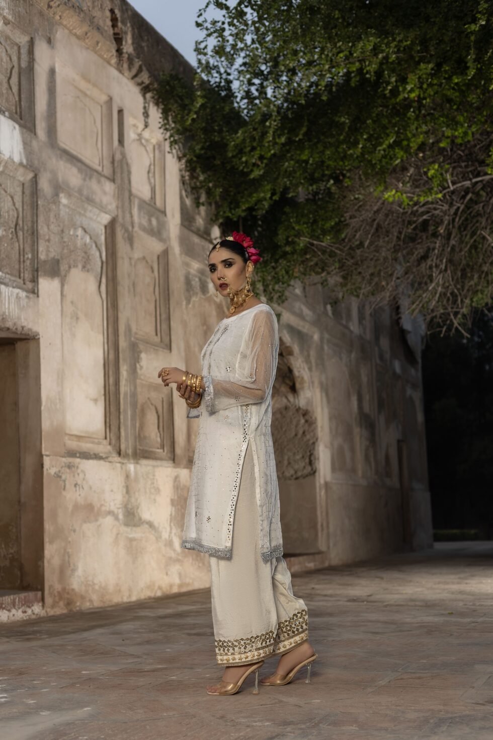 Pure Elegance – White Organza Kurta Trouser with Mukesh Work