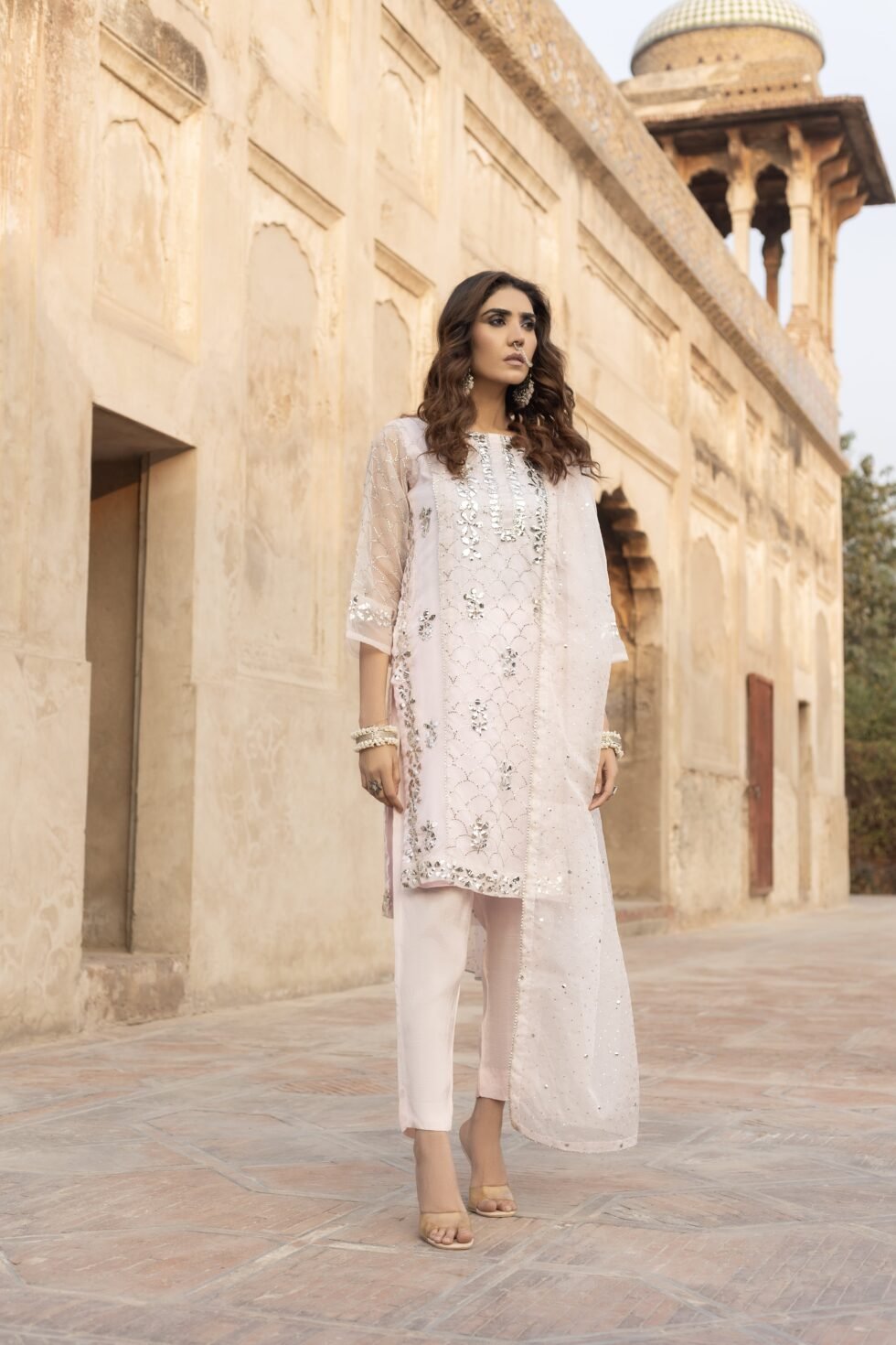 Inspired by classic Pakistani wear, this three-piece outfit blends heritage with grace.